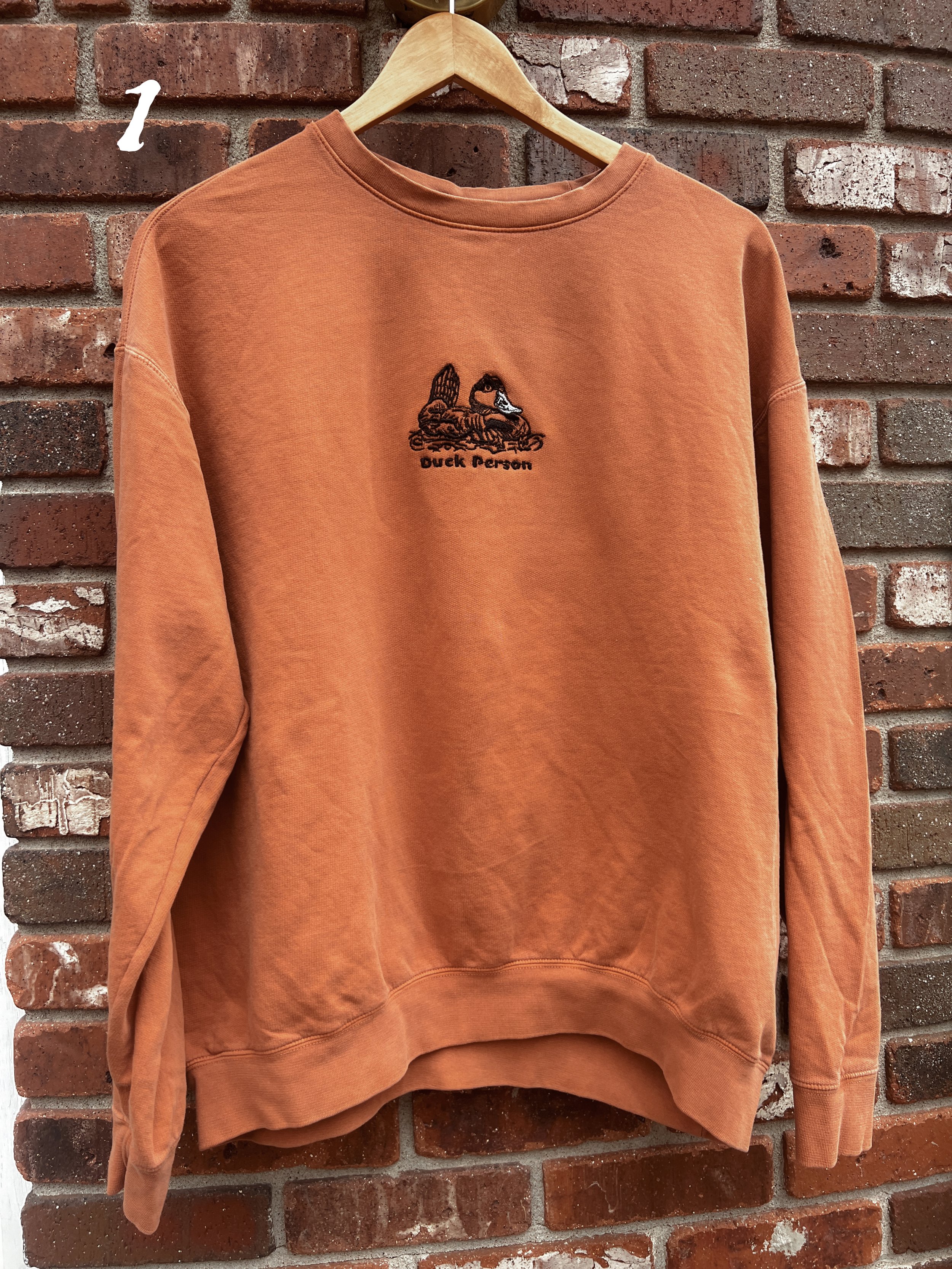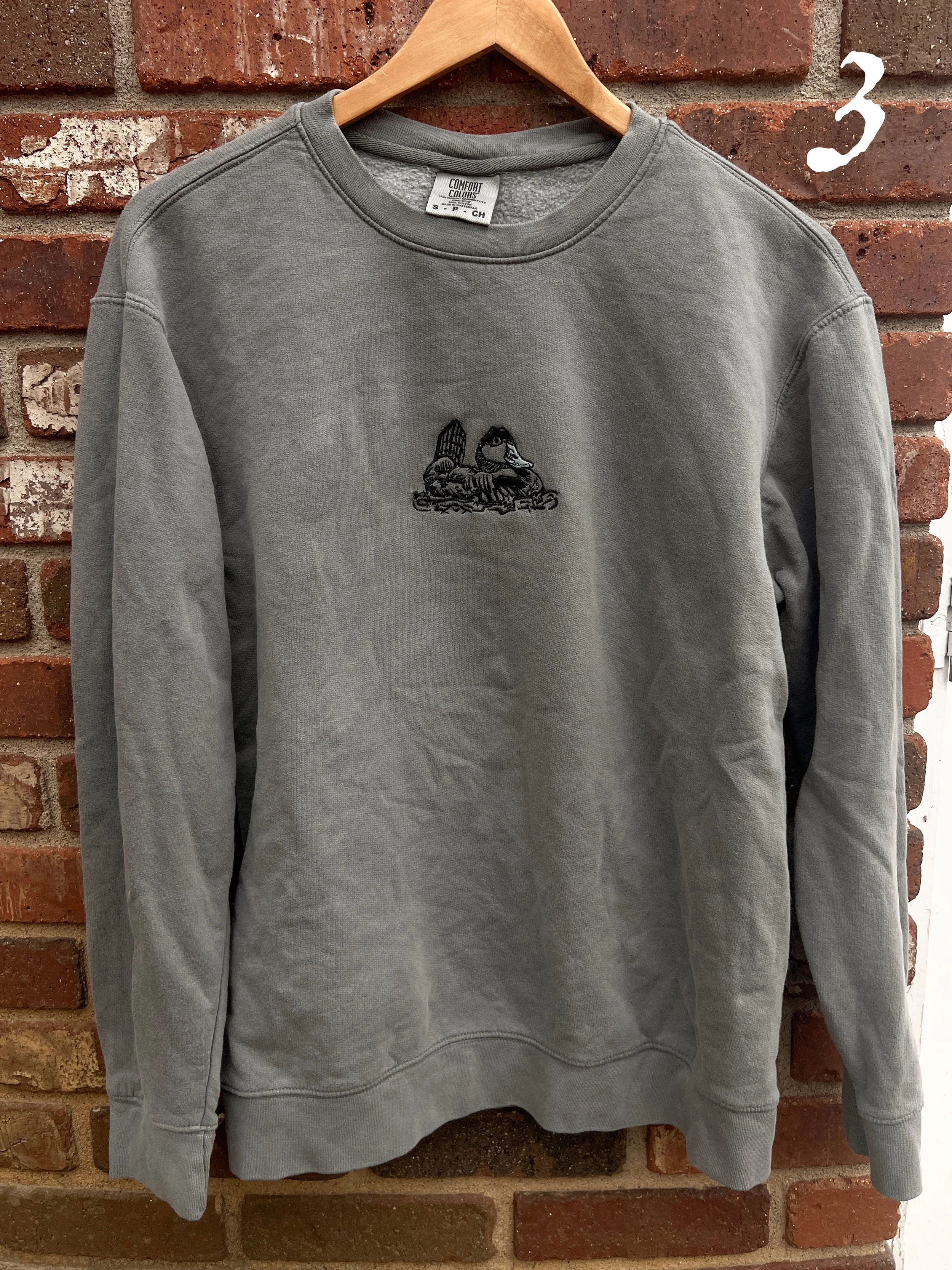 These 3 Comfort Colors, Ruddy Duck Person embroideries all have issues, but I don’t want them to go to waste! So they’ve been discounted accordingly (: All ready to ship!